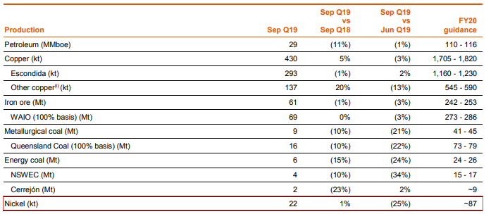 近日,必和必拓發(fā)布其三季度財報,必和必拓首席執(zhí)行官Andrew Mackenzie表示:“通過整個投資組合的持續(xù)強勁運營業(yè)績,我們?yōu)?020財政年度打下了堅實的開端。盡管由于計劃維護和石油自然采收率下降的預期影響,該季度的集團產(chǎn)量略有下降,但指導仍保持不變,我們有望實現(xiàn)比上一財年略高的產(chǎn)量。 South Flank鐵礦石項目已完成50%,我們的所有主要項目均按計劃和預算進行。 我們在石油和Oak Dam銅礦勘探方面取得了令人鼓舞的勘探結(jié)果?!?/span>