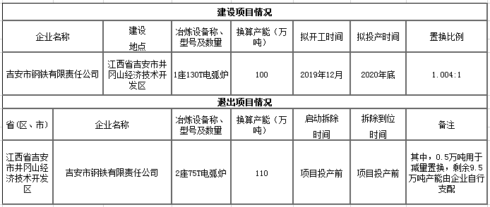 江西吉安鋼鐵電弧爐產(chǎn)能置換方案的公告