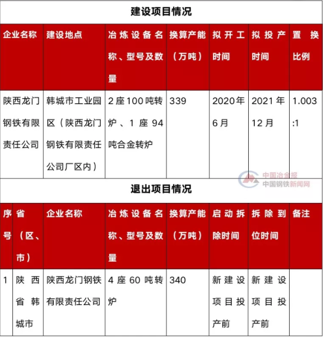 12月2日,陜西省工業(yè)和信息化廳發(fā)布了《關(guān)于陜西龍門鋼鐵有限責任公司建設(shè)項目產(chǎn)能置換方案的公告》(以下簡稱“《公告》”)。