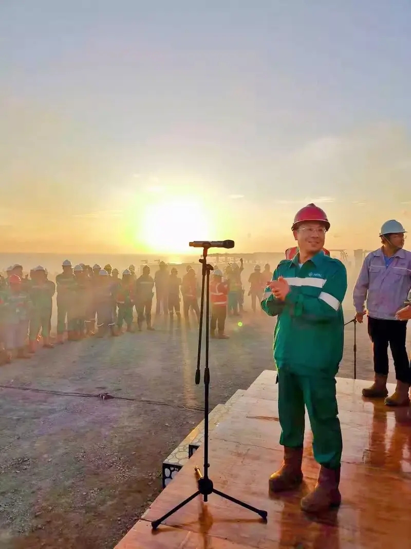 中化六建公司副總經(jīng)理張效康在儀式上致辭,他首先祝賀力勤HPAL項目第一臺850噸高壓釜成功就位,并表示中化六建將一如既往保質(zhì)保量地完成項目任務。之后,HPAL公司聯(lián)合副總經(jīng)理江新芳登臺講話。江總指出,力勤第一臺高壓釜歷經(jīng)了14個月的生產(chǎn)制造期并通過了工廠試驗,高壓釜的成功就位標志著HPAL項目取得了決定性的進展;并向全體參與HPAL項目建設尤其是參與高壓釜制造、運輸、安裝的單位和員工表達了衷心的感謝,希望大家能夠再接再厲、大干三個月,努力實現(xiàn)2020年中期投產(chǎn)的最終目標!