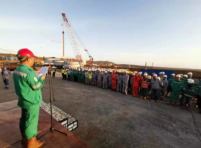 高壓釜就位典禮由現(xiàn)場副總經(jīng)理張寶東主持,參加典禮儀式的有力勤HPAL公司3級及以上中印員工,還有恩菲、賽迪、中化六建、中交一航、科宏、中外運、寶冶、江聯(lián)國際、江西電建、富東、金橋、河北冀東等設計、監(jiān)理、施工單位的負責人和員工代表,共二百余人。