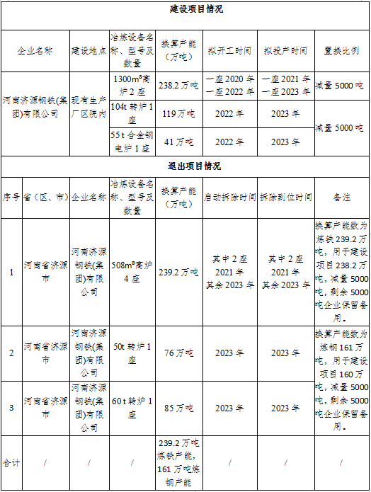 河南濟(jì)源鋼鐵(集團(tuán))有限公司建設(shè)項(xiàng)目產(chǎn)能置換方案公示
