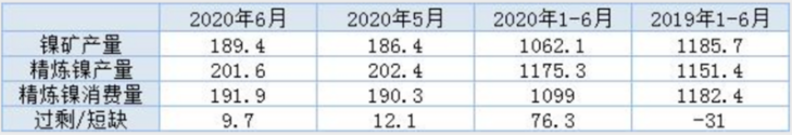1-6月,全球鎳市供應(yīng)過剩76,300噸,去年同期為短缺31,200噸。