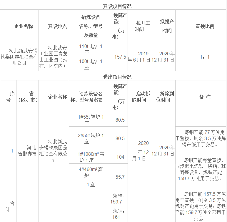 新武安鋼鐵集團鑫匯冶金建設項目產(chǎn)能置換方案公告