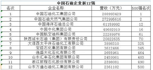 其中,12家石油企業(yè)、20家煤炭企業(yè)、38家鋼鐵企業(yè)及23家電力企業(yè)位列榜單。中國石油化工集團(tuán)、中國石油天然氣集團(tuán)、中國海洋石油總公司位列石油企業(yè)最強(qiáng)榜前三,中國石油化工集團(tuán)位獨占中企500強(qiáng)、石油企業(yè)500強(qiáng)兩項鰲頭;神華、正威國際、山西焦煤集團(tuán)位列煤炭榜前三強(qiáng);寶鋼集團(tuán)、河北鋼鐵集團(tuán)、江蘇沙鋼集團(tuán)位列鋼鐵榜前三強(qiáng);國家電網(wǎng)公司、中國南方電網(wǎng)有限責(zé)任公司、中國華能集團(tuán)公司位列電企前三強(qiáng),國家電網(wǎng)公司以營收209136337萬元位居電企最強(qiáng),在中企500強(qiáng)中位列第三位。(來源:國際能源網(wǎng))