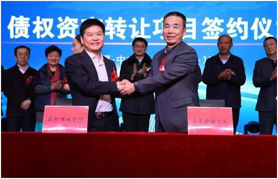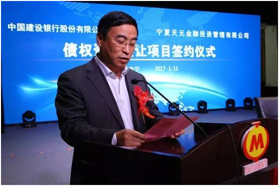 中國建設(shè)銀行股份有限公司湖北分行副行長石章振、寧夏天元錳業(yè)集團(tuán)董事長助理兼寧夏天元金融投資管理有限公司總經(jīng)理代曉勇,分別代表標(biāo)的轉(zhuǎn)讓方和標(biāo)的受讓方在簽約文件上簽字。