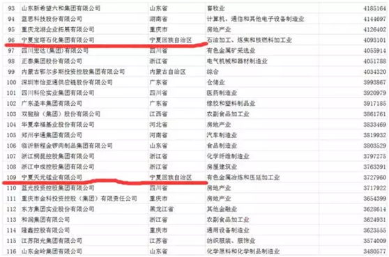 天元錳業(yè)在今天全國工商聯(lián)發(fā)布的“2016中國民營企業(yè)500強”中排名第109名。