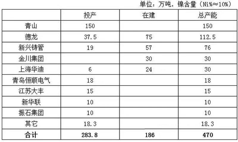 中國(guó)鎳冶煉企業(yè)項(xiàng)目進(jìn)展情況