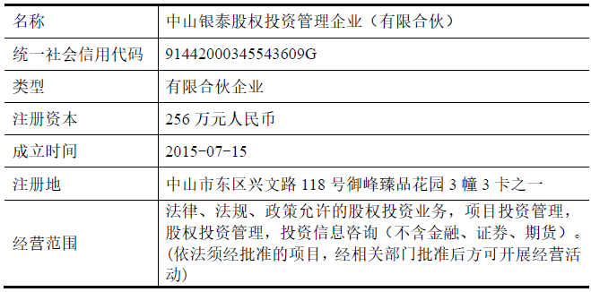 (四)中山銀泰股權(quán)投資管理企業(yè)(有限合伙)