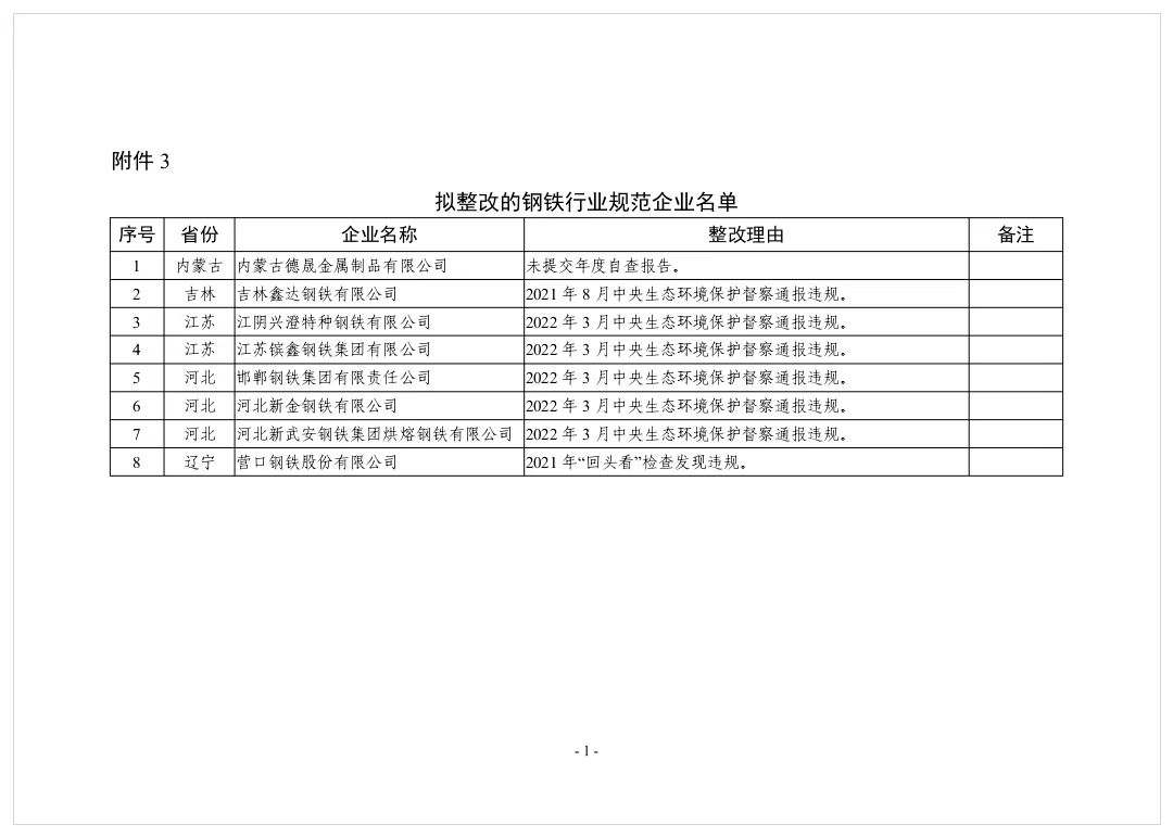 3.擬整改的鋼鐵行業(yè)規(guī)范企業(yè)名單