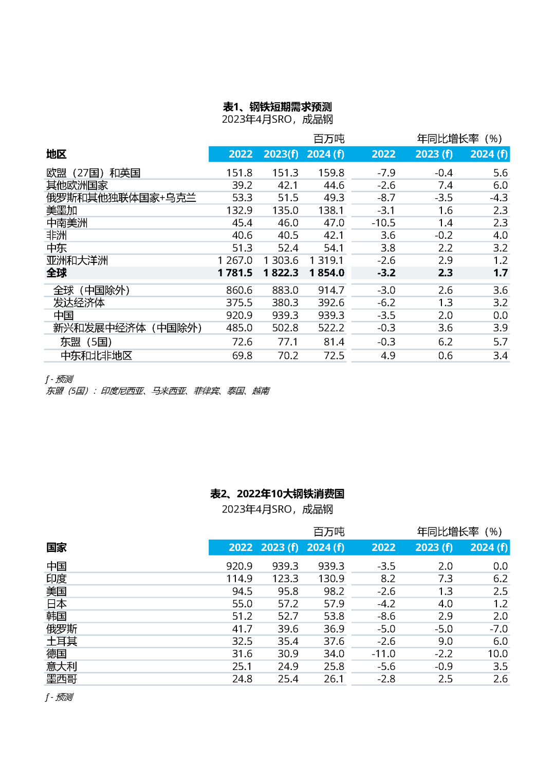 鋼鐵需求繼2022年下跌8.6%之后,預計將在2023年增長2.9%,2024年增長2.0%。