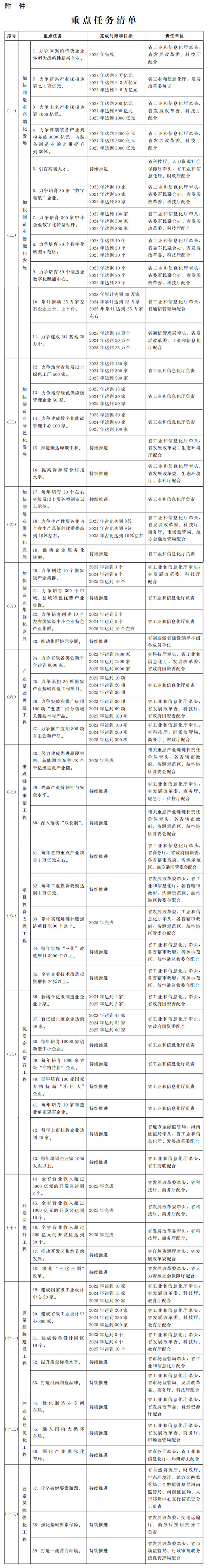 1.加快制造業(yè)數(shù)字化轉(zhuǎn)型。實施制造業(yè)數(shù)字化轉(zhuǎn)型三年行動計劃,按照企業(yè)、園區(qū)、產(chǎn)業(yè)鏈、集群分類實施數(shù)字化轉(zhuǎn)型行動,到2025年,力爭培育30家“數(shù)字領(lǐng)航”企業(yè)、300家中小企業(yè)數(shù)字化轉(zhuǎn)型標桿、30個數(shù)字化轉(zhuǎn)型示范區(qū)、30個制造業(yè)數(shù)字化賦能中心。培育壯大數(shù)字核心產(chǎn)業(yè),加快建設(shè)省元宇宙科創(chuàng)產(chǎn)業(yè)園、中原數(shù)據(jù)要素生態(tài)產(chǎn)業(yè)園,構(gòu)建數(shù)據(jù)交易產(chǎn)業(yè)鏈,推動衛(wèi)星及應(yīng)用產(chǎn)業(yè)健康發(fā)展,爭創(chuàng)國家元宇宙創(chuàng)新應(yīng)用先導(dǎo)區(qū)、國家級數(shù)字產(chǎn)業(yè)集群。(責(zé)任單位:省委軍民融合辦、省工業(yè)和信息化廳、發(fā)展改革委、科技廳)
