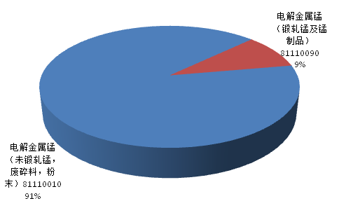 2016年10月中國錳及其制品(包括廢碎料)出口34,674.76噸 其中電解錳占比為87%