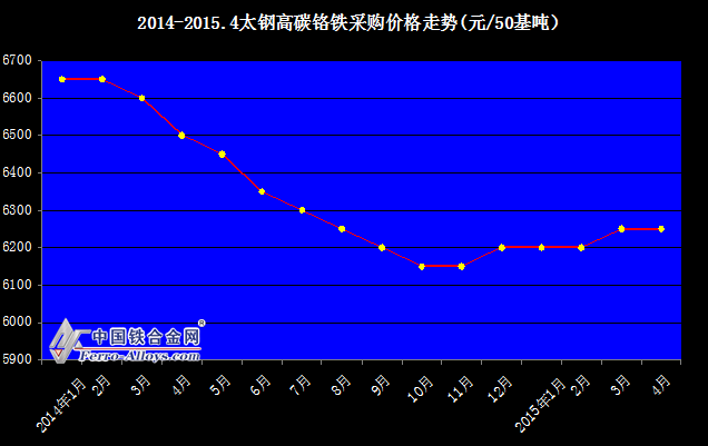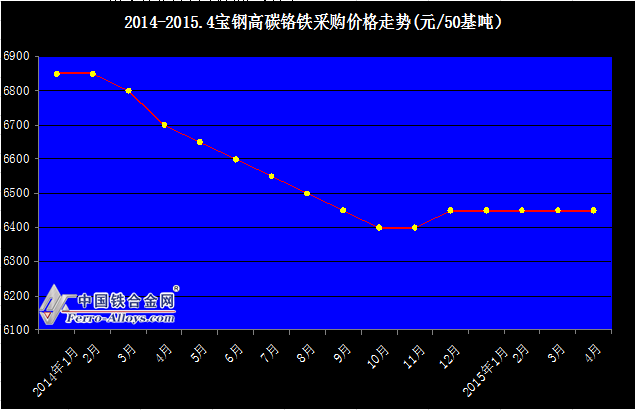 2014-2015.4寶鋼高碳鉻鐵采購(gòu)價(jià)格走勢(shì)圖