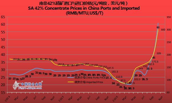 寶鋼高碳鉻鐵招標(biāo)價格走勢圖(201611)