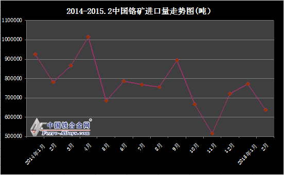 2014-2015.2中國鉻礦進(jìn)口量走勢圖