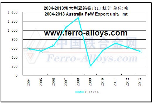 2004-2013澳大利亞鎢鐵進口統(tǒng)計