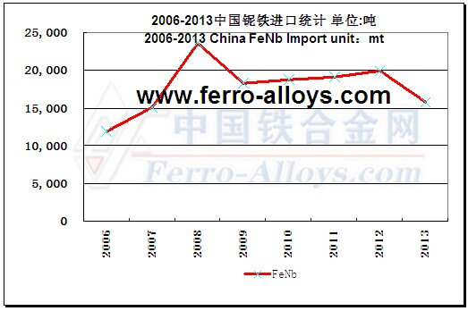 2006-2013中國鈮鐵進(jìn)口統(tǒng)計