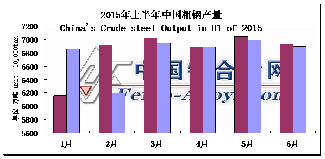 2015年上半年中國粗鋼產(chǎn)量統(tǒng)計