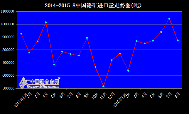 2014-2015.8中國鉻礦進口量走勢圖