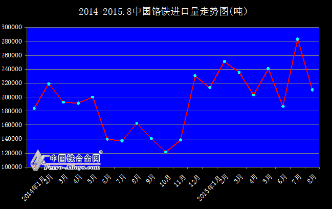 2014-2015.8中國鉻鐵進口量走勢圖