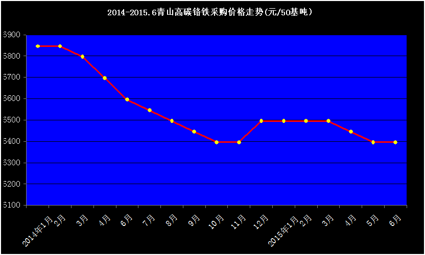 2014-2015.6青山高碳鉻鐵采購價格走勢圖