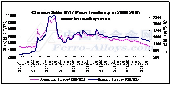[Ferro-Alloys.com] In recent period, ex-work price of silicon manganese 6517 tumbled at RMB4,850-5,150/mt in China and RMB4,300-4,500/mt for 6014.